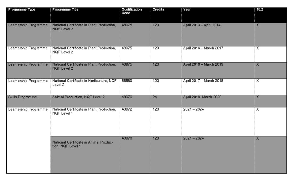 Our organization currently has a three-year learnership contract with Eland Platinum Mine Farm, training learners on Plant Production and Animal Production, which confirms the confidence that the market has on our experience, technical expertise and capacity to deliver service excellence.